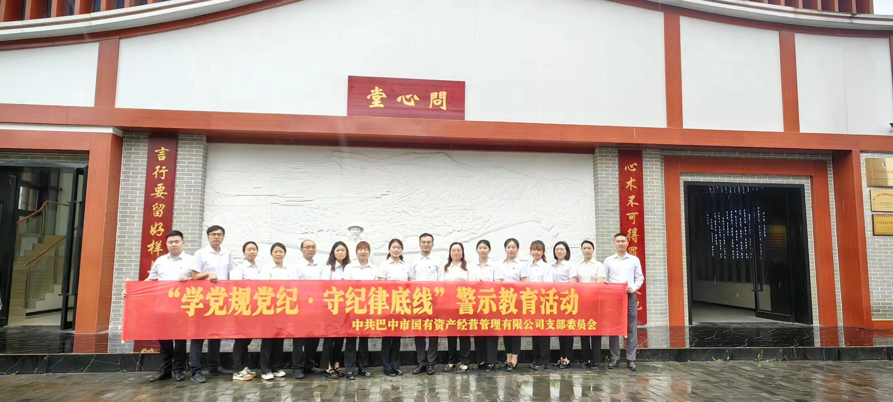 为进一步提高党员干部的法纪意识,深入推进党纪学习教育工作走深走实。5月29日,国资经营公司党支部组织党员干部赴恩阳区“问心堂”开展“学党规党纪·守纪律底线”警示教育活动。