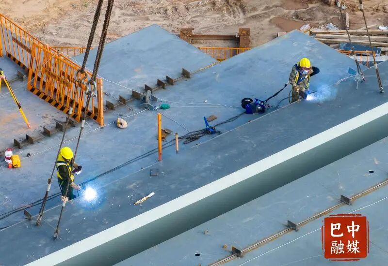 该桥是巴城过境公路重难点工程之一,全长503米,上跨恩广高速匝道、高速主线、地方改移道路,项目施工难度极大,须在高速路上采用大型吊装设备进行拼装和焊接。经公司与施工单位精心组织和各管理单位的大力支持,截至目前,大桥的钢箱梁已完成110个单元的吊装和焊接,总体完成比例约80%,计划9月底前实现桥梁合龙。