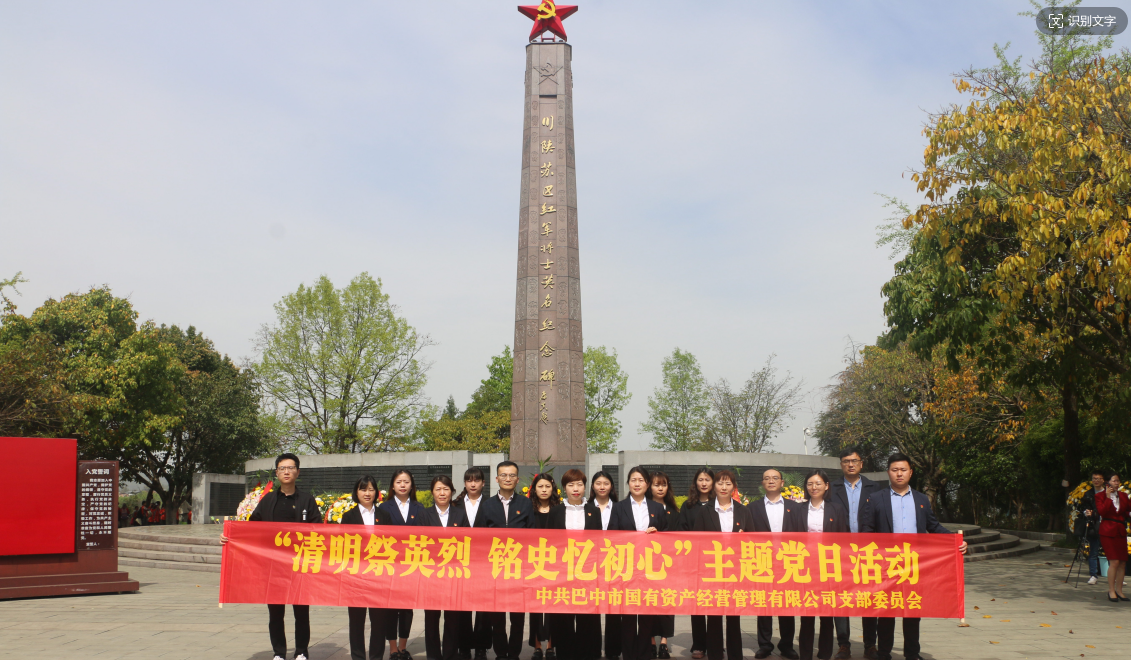为铭记历史、缅怀先烈。4月3日,国资经营公司组织全体党员干部到川陕革命根据地将帅碑林开展“清明祭英烈 铭史忆初心”主题党日活动。 活动现场,公司党支部书记徐海燕同志带