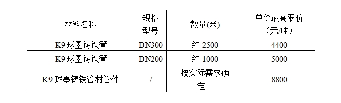 巴中市圣泉自来水有限公司球墨铸铁管材管件采购项目(兴文新区一路东段、十四路东段给水管道工程)比选公告